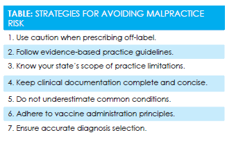 As the saying goes, the best defense is a good offense, or to put it another way, being proactive rather than reactive can go a long way toward leading to optimal outcomes in clinical practice. Because the retail health model is one of the newer concepts in care delivery, patient expectations may not always be realistic. One thing we as providers never want to consider is the potential for being sued. Knowledge is power, and understanding the standards to which we are held is critical in providing high-quality patient care. In the retail setting, we should follow the same quality practice standards as in any other area of medicine. Adhering to sound clinical guidelines can help mitigate malpractice risk. The following are some basic guiding principles for clinical practice in retail clinics that will help minimize the risk of malpractice actions.