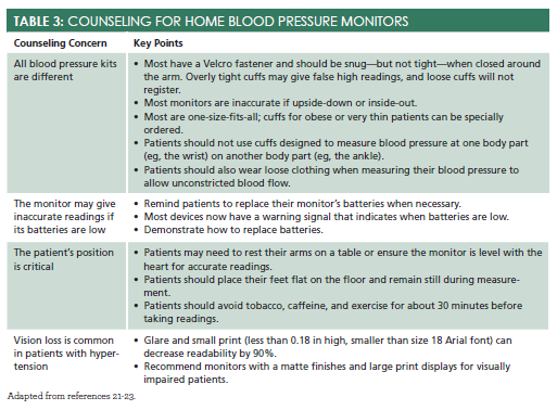 Home blood pressure monitors allow patients to track blood pressure in a familiar setting, determine if medication is working, and catch changes early.20Patients who select new blood pressure cuffs need counseling (seeTable 321-23).