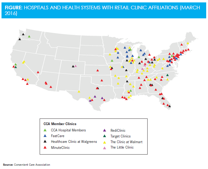 Retail clinic—health system affiliations generate a paradigm shift that creates an outlet for the rising chronic care demands, provides economic relief, and channels the appropriate level of care to the appropriate level of expertise in a risk stratification model. Affiliation­-referral connections grant transparency and easy follow-through for patients. From the acute care of the complex patient to chronic care management for patients with hypertension and diabetes, partnerships facilitate logical movement of a patient from one venue to another when testing, imaging, mental health support, or other specialty services are required. Added efficiency is demonstrated when technologic integration links up to support fluid movement of documentation across sites.3
