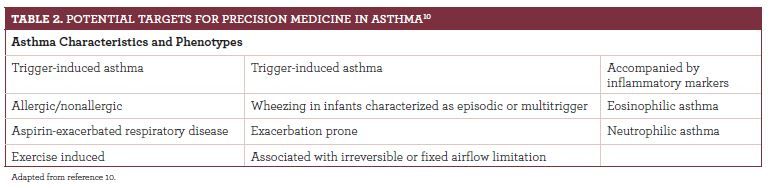 Although precision medicine is most likely to be used in cancer, its application in other areas is growing.Table 15-9lists areas of precision medicine research and the emerging approach in each. Health care providers should note that progress is being made in the use of precision medicine to treat asthma, which has traditionally been treated with products in the retail setting. (Table 2).10