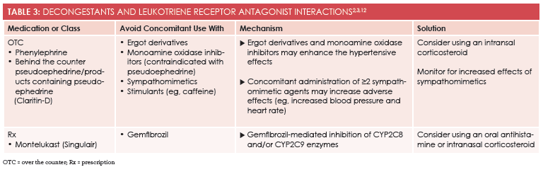 TABLE 2: ORAL AND INTRANASAL ANTIHISTAMINE INTERACTIONS2,3