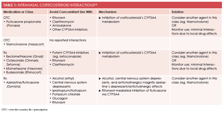 INCs are considered the single most effective class of medications for treating allergic rhinitis (AR) (Table 12,3). Because many patients use OTC medications for seasonal allergies,4however, they may select oral drugs because they are unfamiliar with—and perhaps a little afraid of—INCs. Health care providers are largely responsible for recommending treatment and preventing interactions. In doing so, they can help patients select safe, effective options while advising them on when to step up to prescription drug therapy.