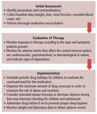The flowchart presents considerations when prescribing CNS stimulants.5,11