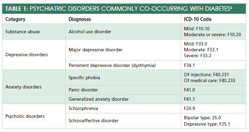 The interface between diabetes and psychiatric disorders is complex and not completely understood. This comorbidity often increases the risk of poor patient outcomes; however, when primary care providers and psychiatric specialists work together, these individuals can receive effective and comprehensive treatment.