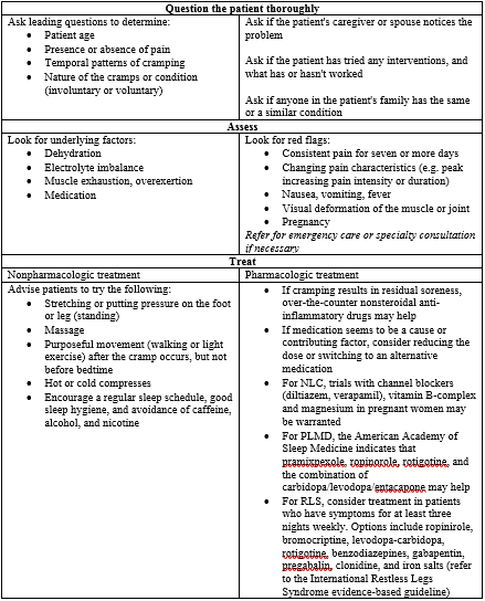 Treating any cramping disorder depends on a good assessment. The figure gives a basic algorithm for retail healthcare practitioners.