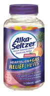 Alka-Seltzer Heartburn + Gas ReliefChews offer fast relief of heartburn and relief of bloating, pressure, or the stuffed feeling commonly referred to as gas. The soft-textured chews are smooth, rather than chalky or gritty, and are tropical fruit flavored. The chews contain calcium carbonate as an antacid and simethicone as an antigas agent. Adults and children 12 years and older should chew and swallow 1 to 2 chewable tablets every 2 to 4 hours as symptoms occur, or as directed by a doctor.