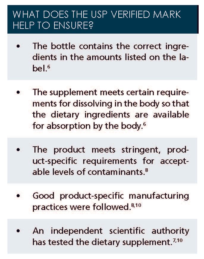 USP has been establishing quality standards for drugs since 1820 and thus is often associated with pharmaceutical products and ingredients. There may be less awareness among retail-based clinicians and consumers with regard to USP’s quality standards for dietary supplements and the rigor of the USP Dietary Supplement Verification Program (“DSVP”) that requires compliance to those standards. Dietary supplement products are awarded use of the “USP Verified” Mark on their label to indicate that USP has tested and verified that the product complies with USP public quality standards.6,10