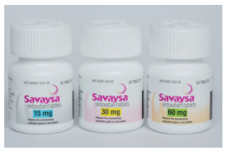Indication:The FDA has approved Savaysa (edoxaban), a factor Xa inhibitor, to reduce the risk of stroke and systemic embolism in patients with nonvalvular atrial fibrillation. The recommended dose is 60 mg once daily in patients with a creatinine clearance (CrCl) >50 to ≤95 mL/min.; Savaysa should not be used in patients with a CrCl >95 mL/min. The dose should be reduced to 30 mg once daily in patients with a CrCl of 15 to 50 mL/ min. Savaysa already has FDA approval for the treatment of deep vein thrombosis and pulmonary embolism following 5 to 10 days of initial therapy with a parenteral anticoagulant.