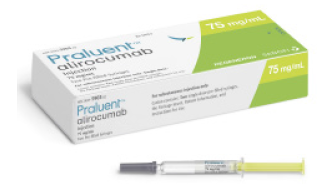 Indication:The FDA has approved Praluent (alirocumab), a proprotein convertase subtilisin kexin type 9 inhibitor antibody, as adjunct to diet and maximally tolerated statin therapy for the treatment of adults with heterozygous familial hypercholesterolemia or clinical atherosclerotic cardiovascular disease who require additional lowering of low-density lipoprotein cholesterol (LDL-C). The recommended starting dose is 75 mg subcutaneously once every 2 weeks. If the LDL-C response is inadequate, the dosage may be increased to the maximum 150 mg every 2 weeks.