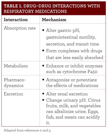 Drug—food interactions occur using 4 different mechanisms (see Table 1).2,3